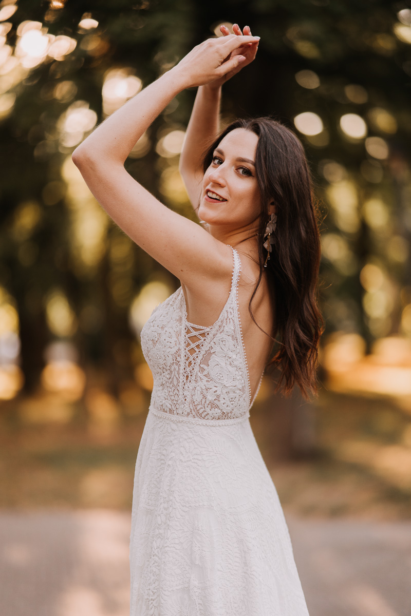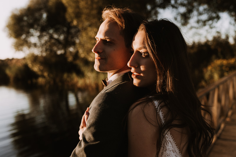 Po sesji przy Pałacu Lubomirskich pojechaliśmy nad Zalew Dojlidy, by złapać trochę słońca nad wodą. Pogoda była wymarzona, światło i otoczenie dawały duże możliwości wykonania różnorodnych ujęć. Wykorzystaliśmy mostek i kładkę na wyspie, a także ścieżkę biegnącą wzdłuż zalewu.